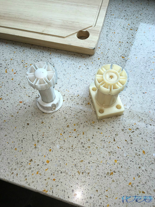 四、櫥柜柜腳的承重也是很重要的。柜腳太細,承重不夠容易導致柜體整個下沉。結果就是臺面部分凌空,沒有柜體支撐的部分和有柜體支撐的部分會產生斷層開裂!選擇櫥柜的時候好問清楚商家用的是什么樣的柜腳,這一點不容忽視哦!