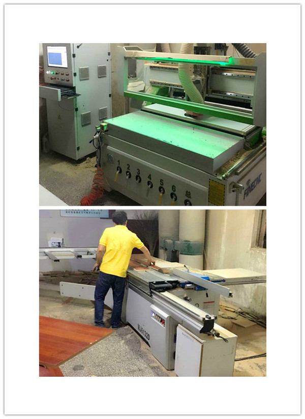 第三步是裁板。這一步就比較重要了!裁板的時候好能親自去工廠看一下,跟工廠簽合同簽的是什么樣的板材,什么樣的環保等級要看清楚的。特別是環保等級,好要看清楚標志,看著師傅把板裁完,那樣就不會有錯了,因為定制家具的板材都是根據你們家柜子的尺寸來裁的,而且哪家都不一樣,所以廠家裁完的板只能用來做你們家的家具。然后就是裁板機了,一般家具廠都采用手推鋸和數控鋸來裁板,毋庸置疑,肯定是數控鋸精度要更高了。正常公差都是控制在50絲以內的,50絲以內的公差用在柜體板上還是可以接受的!正規的家具廠每塊柜體板上還會貼客戶的專屬信息,那樣更不容易出錯,也方便批量生產!