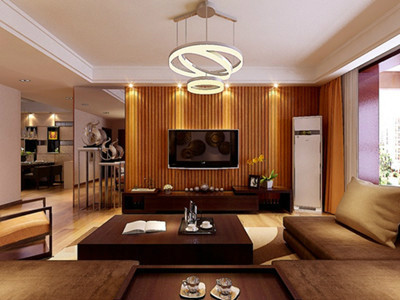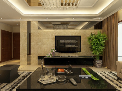 電視墻一般與頂面的局部吊頂相呼應,吊頂上一般都有燈,所以要考慮墻面造型與燈光相呼應,照明燈的顏色和強度也應該留意,不要運用瓦數過大或顏色太耀眼的燈泡,這樣在觀影時才不會有雙眼刺痛或眩暈的感覺。