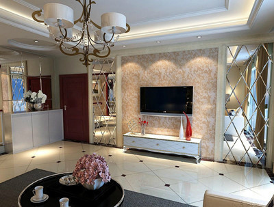 采用玻璃與金屬材料做電視背景墻,能給居室帶來很強的現代感。其成本相對不是很高,不過施工難度較大。適當地鑲嵌一些金屬線,效果也不錯。也有些消費者愛用烤漆玻璃做背景墻,對于光線不太好的房間還有增強采光的作用。