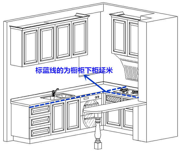 第一種:按延米算,按延米算是指根據柜子的長度來算總價,一米的單價*總米數=總價,一般帶臺面的柜子會采用這樣的算法,比如櫥柜、衛浴柜、洗衣柜!延米的算法又分為單算下柜單價*下柜米數+吊柜單價*吊柜米數=總價、下柜單價*下柜米數=總價(吊柜贈送)、下柜單價*下柜米數+石材單價*石材米數+吊柜單價*吊柜米數=總價。具體的看柜子的時候一定要跟商家問清楚哦,因為來去很大的!還有櫥柜里是否包含五金,碗藍拉籃這些都要問清楚的,不然后期意想不到的增項會讓你很痛苦的!(延米算法參考下圖)
