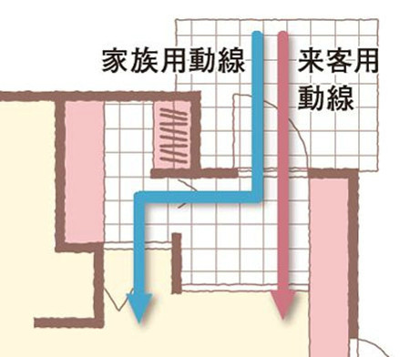 玄關的流線設計:家人和客人的流線分開,并設置不同的鞋柜收納空間