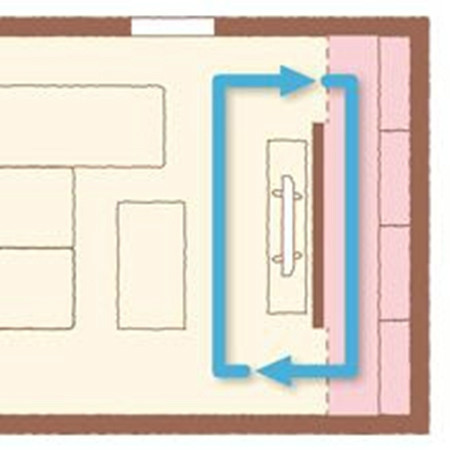 這個布置適合大玄關。對于較小的玄關,有如下方式縮減流線距離,使布局更緊湊。