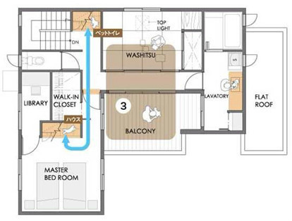 也就是家務空間集中布置。在廚房附近布置洗衣房,做飯的當兒衣服也洗好了,能夠同時兼顧不同的家務勞動,同時可以更方便的照顧到孩子的淋浴等,非常方便。