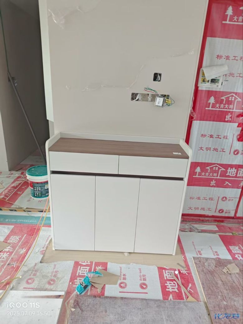 貨已安全送到客戶家了,7 天內安排師傅上門安裝哦。安裝階段請您把您家需要用到的廚房水槽、灶具、浴柜臺盆放置在現場,后期臺面安裝需用到。柜子安裝好后進入臺面測量環節,臺面量完后一個星期內送貨并安裝。