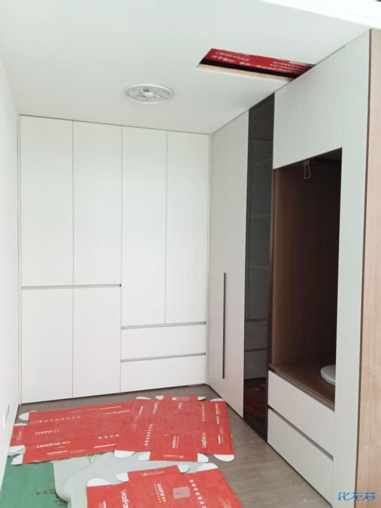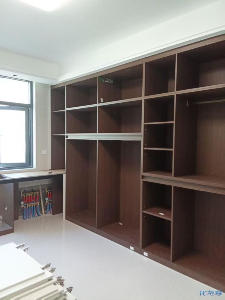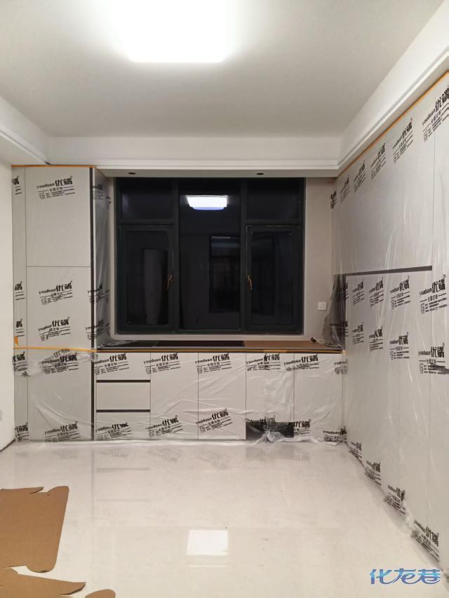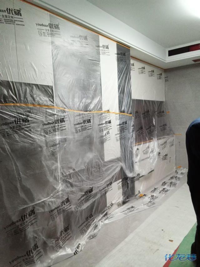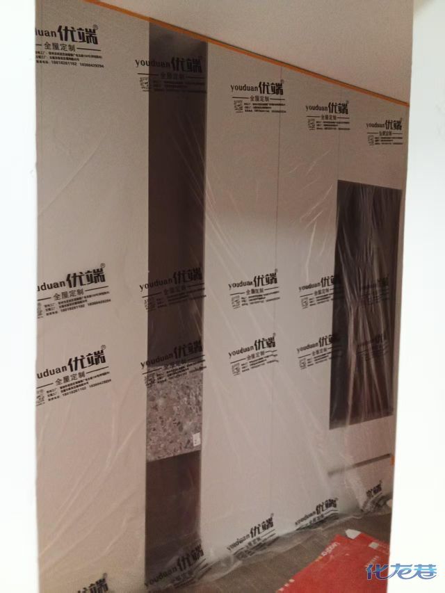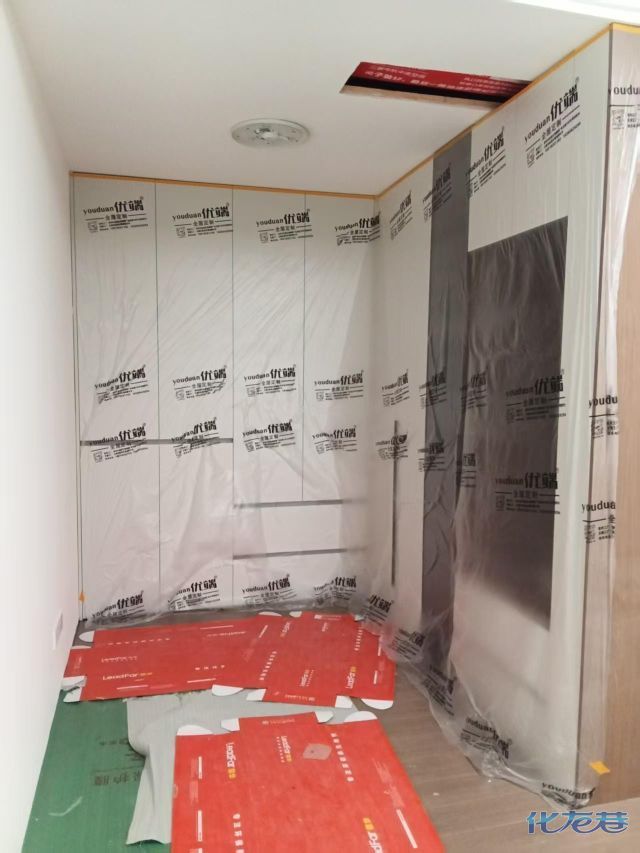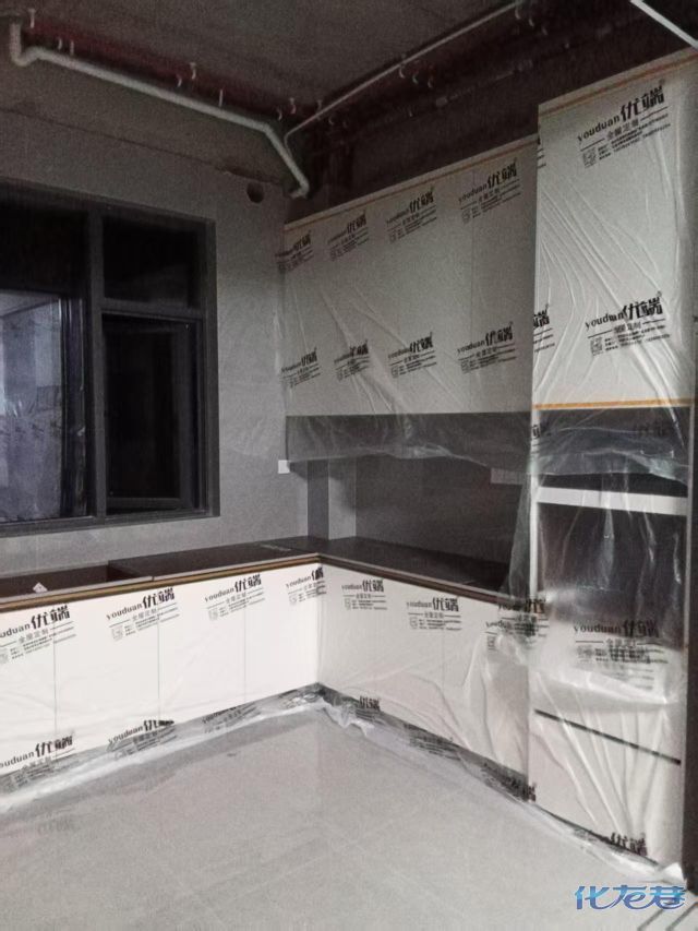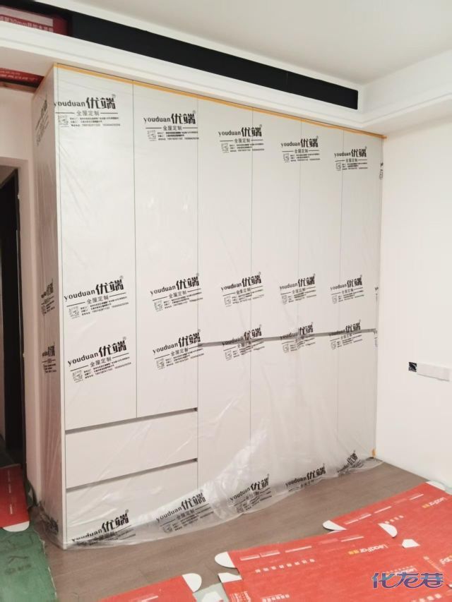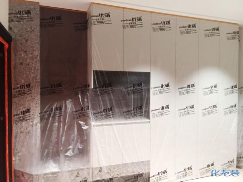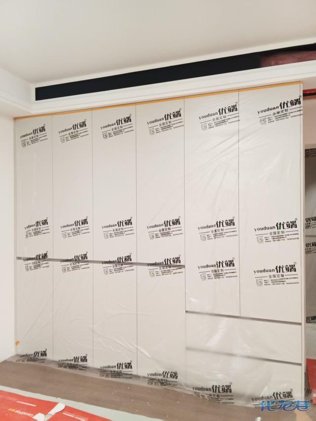 安裝完成的柜子都用塑料膜保護(hù)起來(lái)了