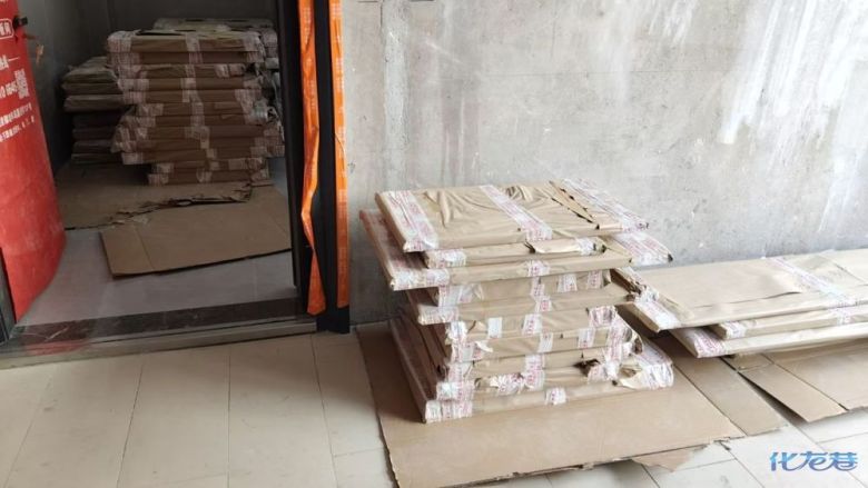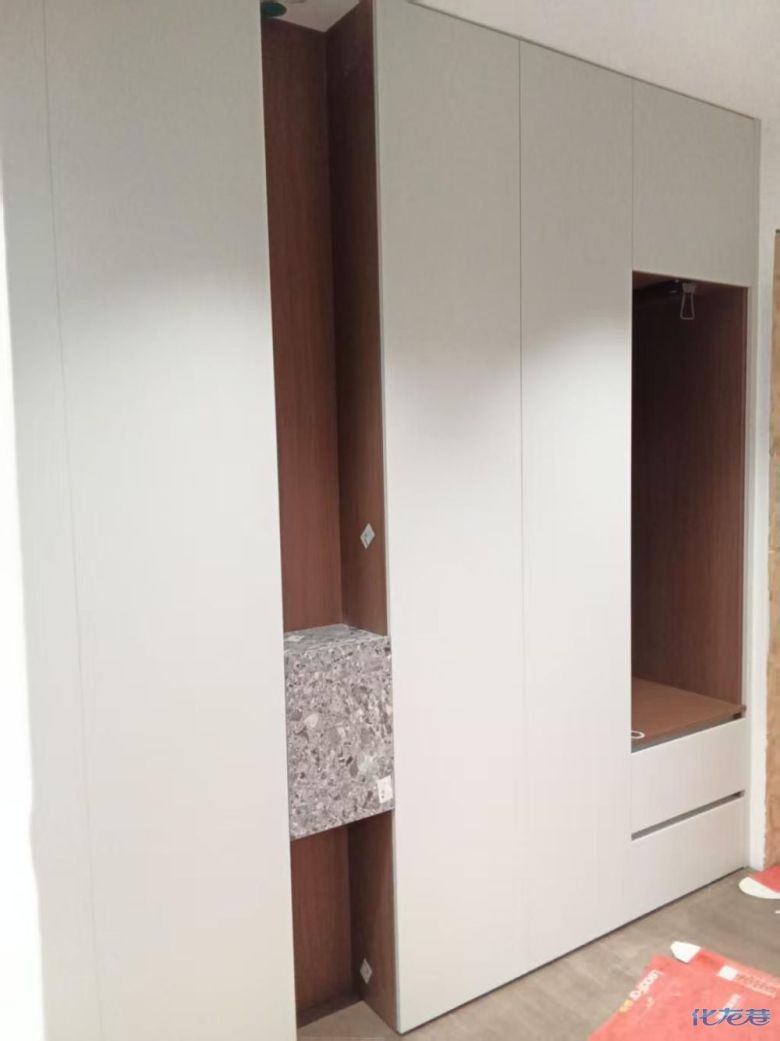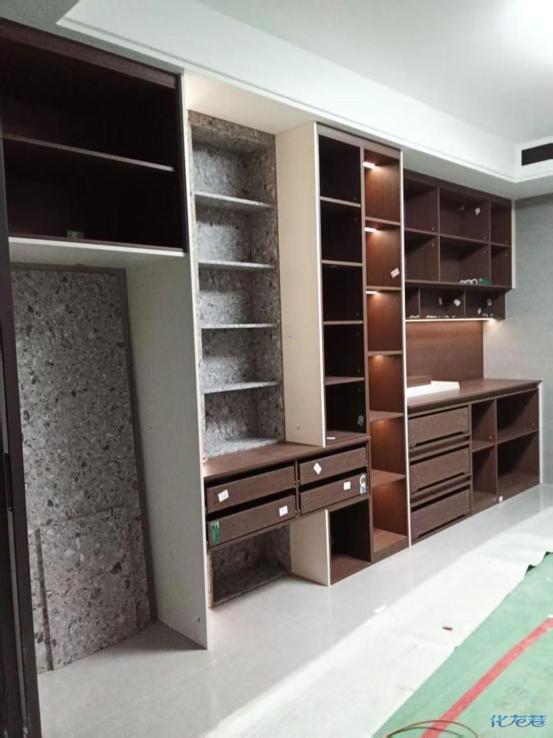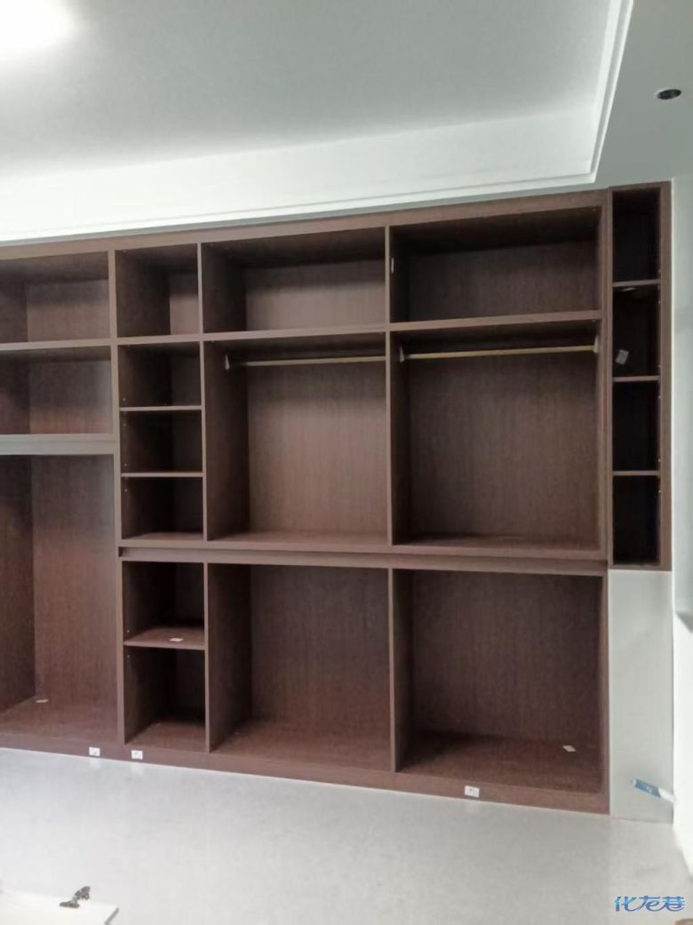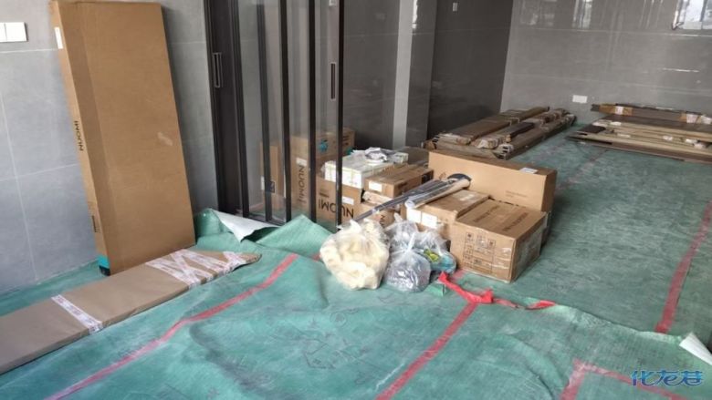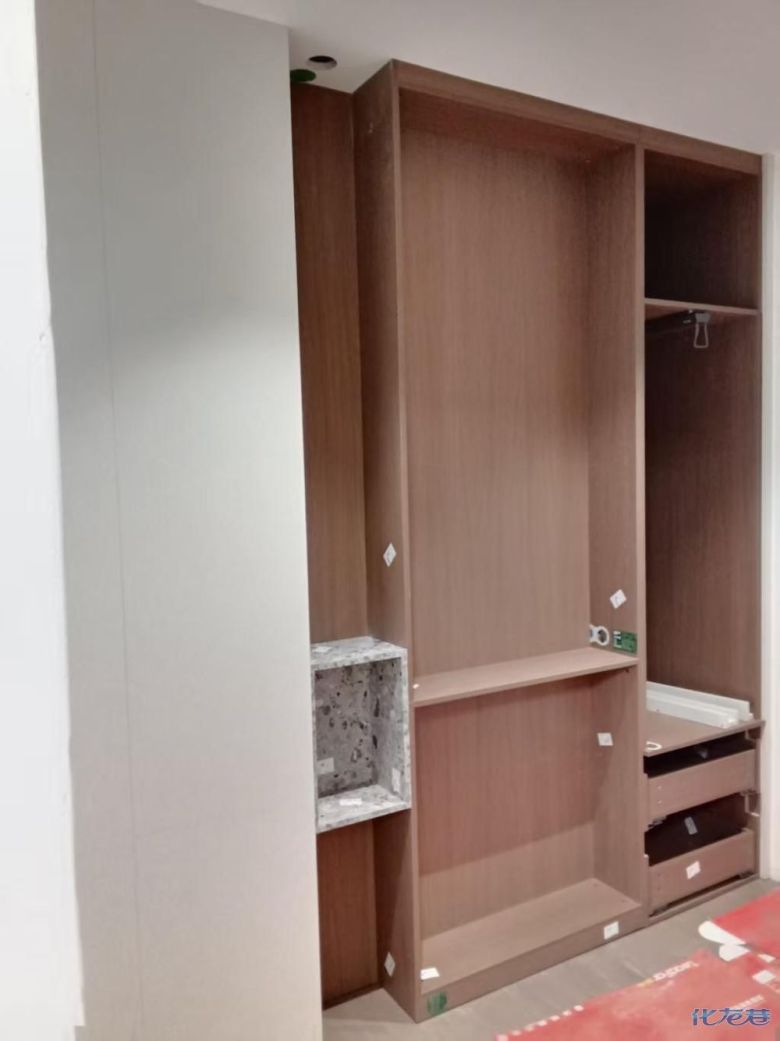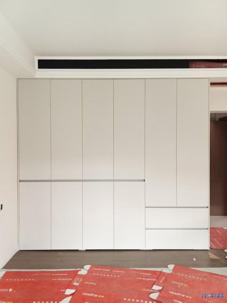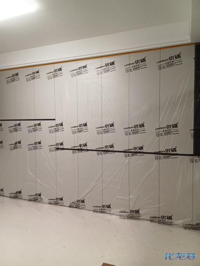 安裝完成的柜子都用塑料膜保護(hù)起來(lái)了