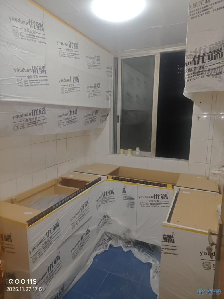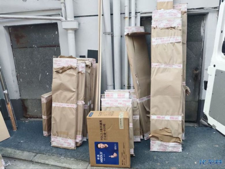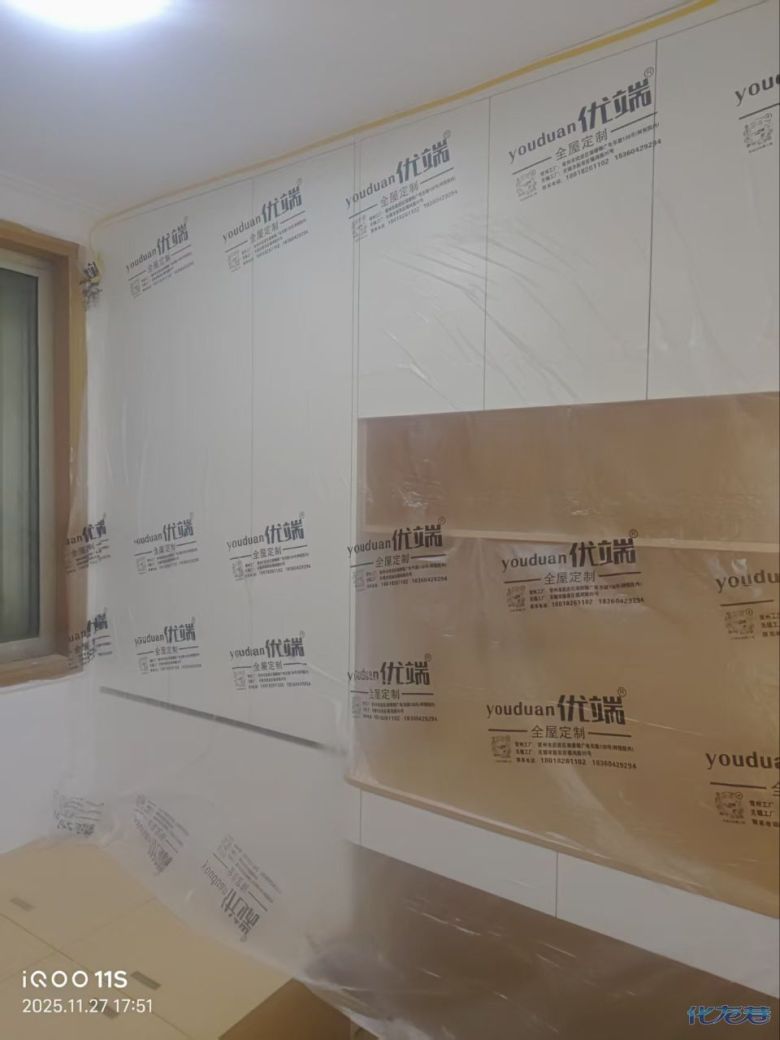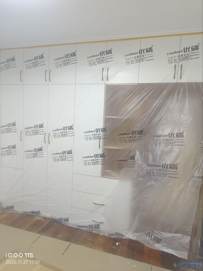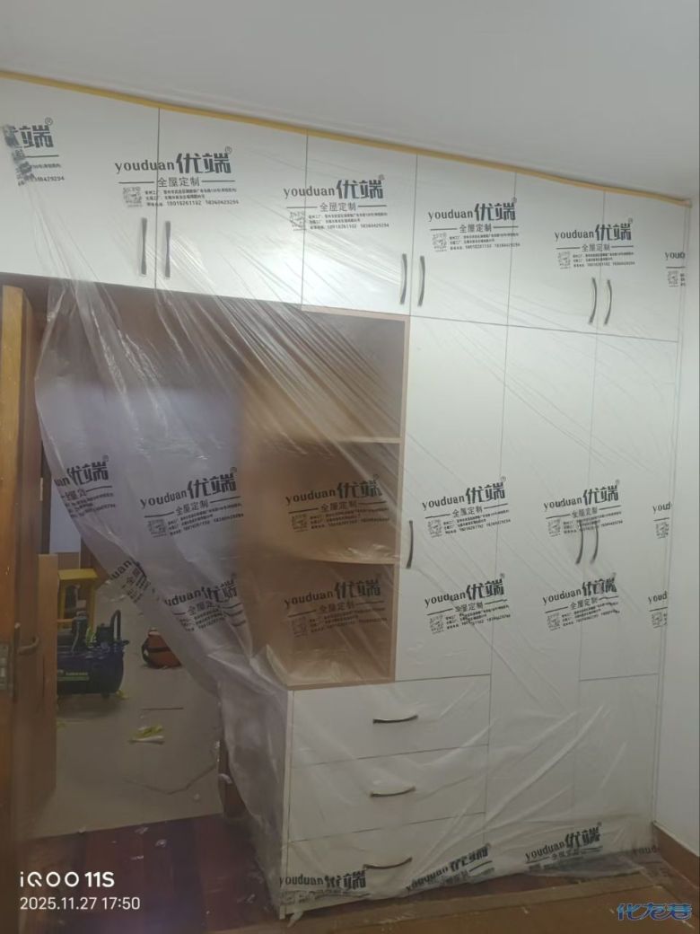 安裝完成的柜子都用塑料膜保護起來了