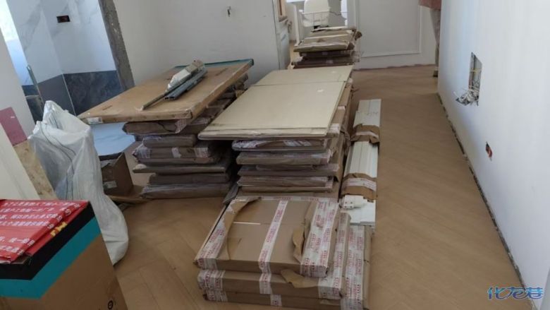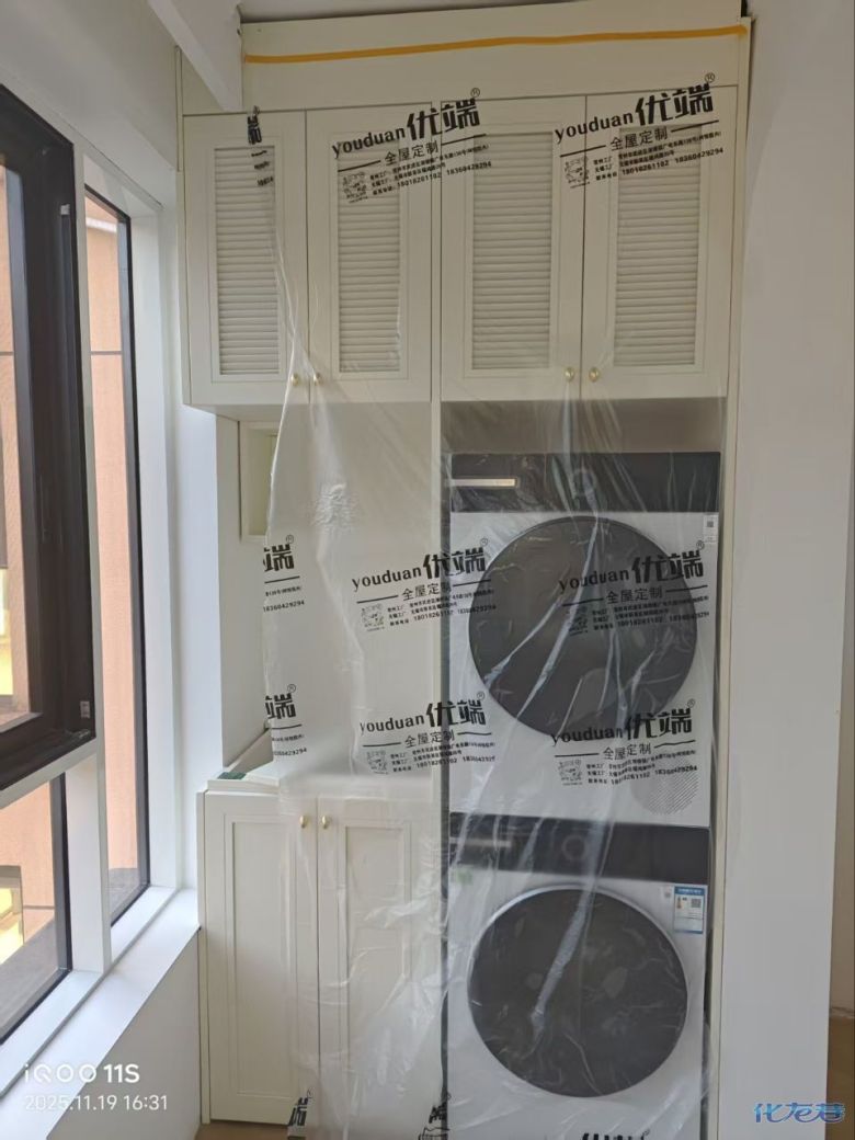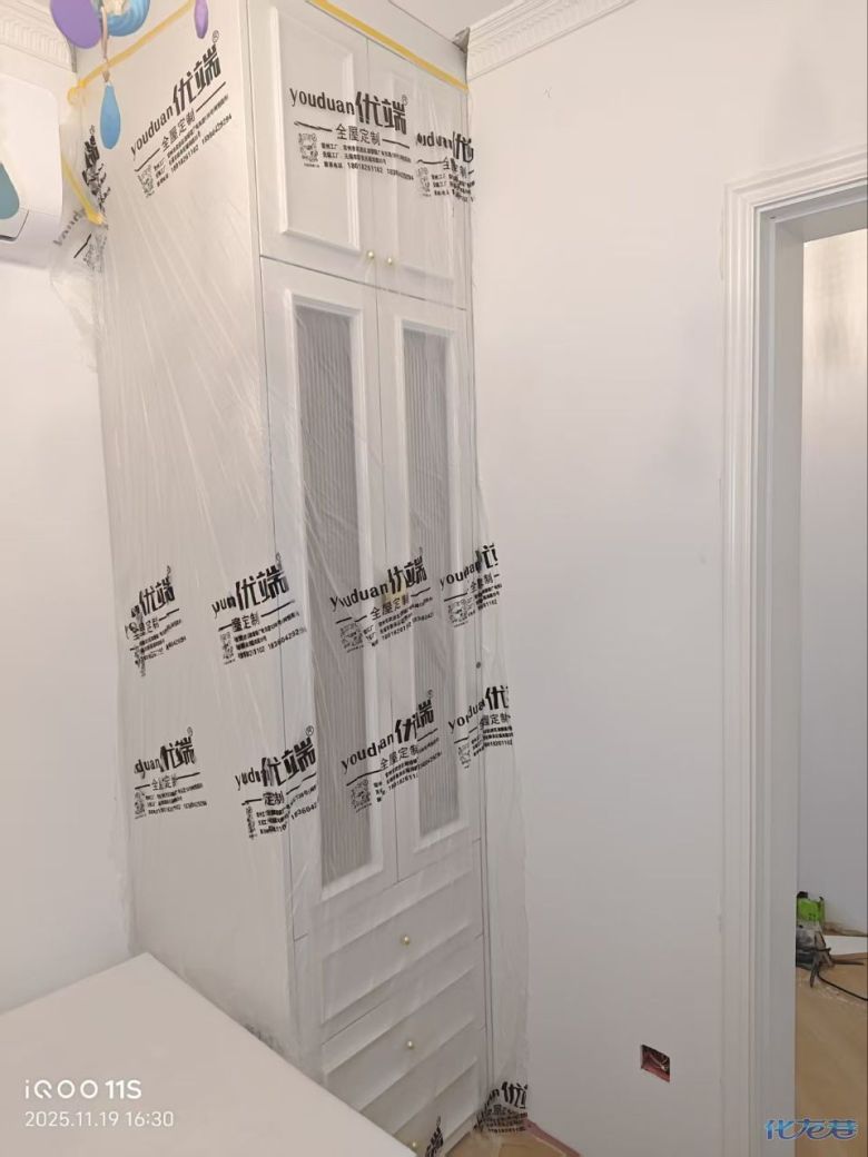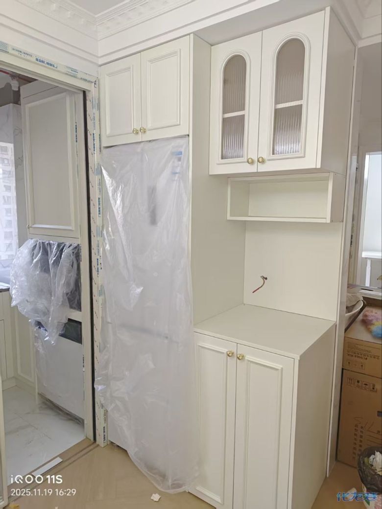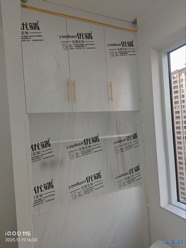 安裝完成的柜子都用塑料膜保護(hù)起來了