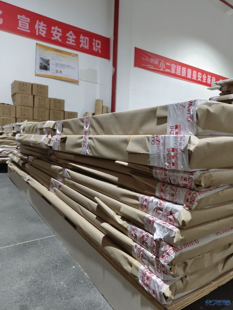 進入打包環節,我家柜子每塊板都是整個打包起來的,以防運輸過程中劃傷或者磕碰到,跟板材下面墊板一個原理哦!重新訂板會存在色差,這是重點,圈起來必考。全部打包好就可以聯系客戶送貨咯!