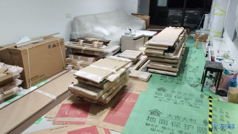 安裝完成的柜子都用塑料膜保護起來了