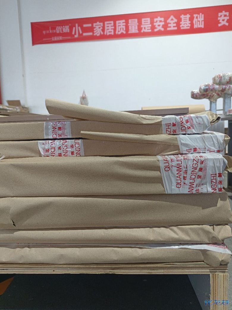 進(jìn)入打包環(huán)節(jié),我家柜子每塊板都是整個(gè)打包起來的,以防運(yùn)輸過程中劃傷或者磕碰到,跟板材下面墊板一個(gè)原理哦!重新訂板會(huì)存在色差,這是重點(diǎn),圈起來必考。全部打包好就可以聯(lián)系客戶送貨咯!