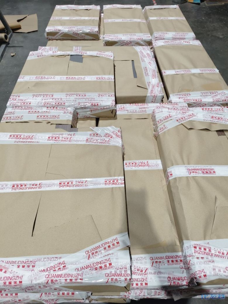 進入打包環節,我家柜子每塊板都是整個打包起來的,以防運輸過程中劃傷或者磕碰到,跟板材下面墊板一個原理哦!重新訂板會存在色差,這是重點,圈起來必考。全部打包好就可以聯系客戶送貨咯!